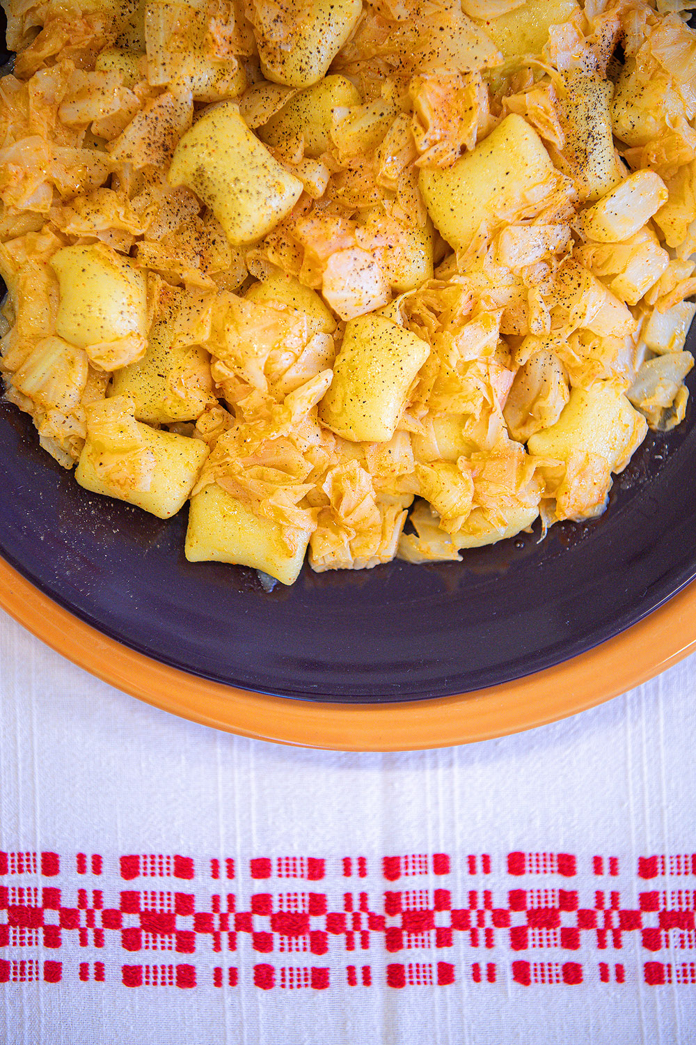 Zamijesite tijesto od kuhanog krumpira, oštrog brašna, jaja, malo vode i soli. Oblikujte valjak, narežite jastučiće i skuhajte u vreloj posoljenoj vodi. Ocijedite i pomiješajte s kupusom.