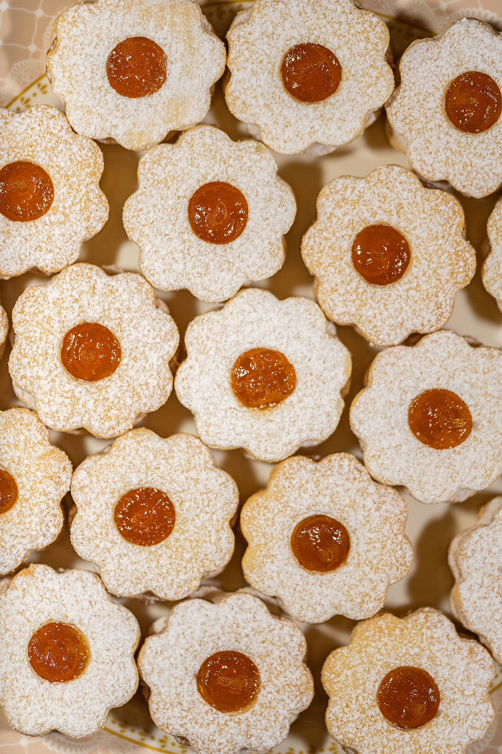 Umijesite glatko tijesto. Oblikujte kuglice i posložite ih u lagano namašćen lim ili na papir za pečenje. Vrhom kuhače napravite udubinu u sredini svake kuglice. Pecite 12–15 minuta na 180 °C. Ohladite pa rupice napunite pekmezom od šljiva.