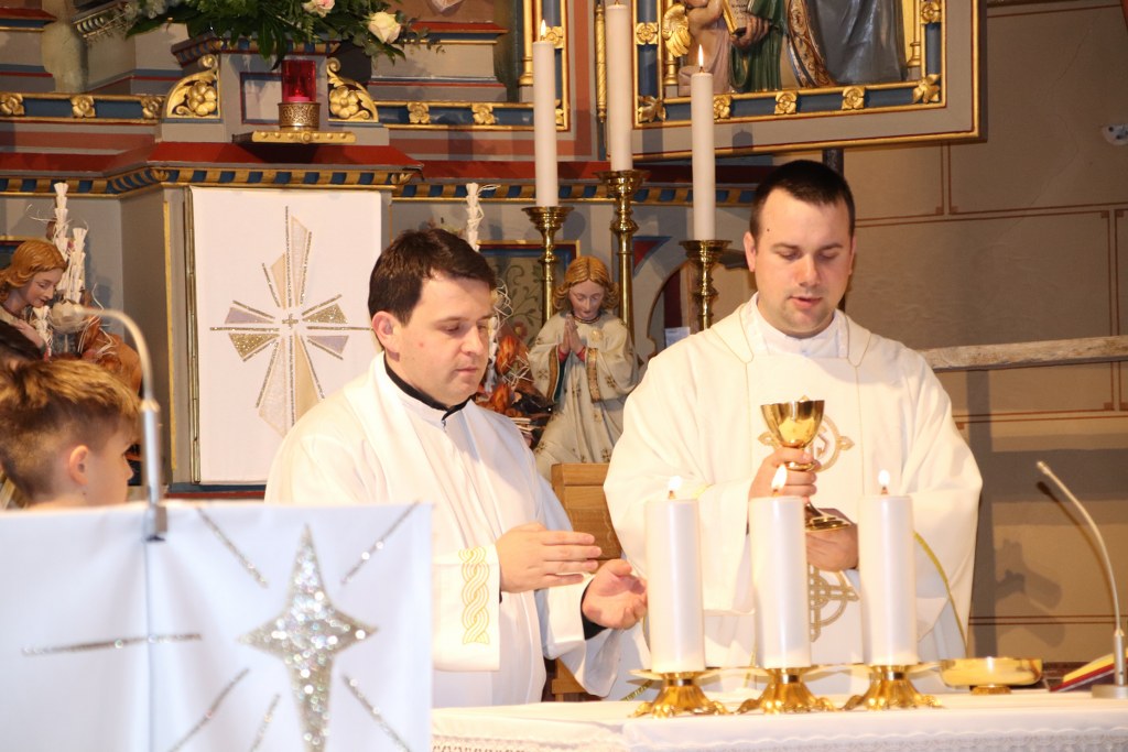 Tako je nakon pobožnosti sv. Josipu, jučerašnje euharistijsko slavlje predvodio vlč. Marko Dušak, župni vikar u Novoj Gradiški, u koncelebraciji s vlč. Draganom Hrgićem, a tijekom cijele svete mise kao i svake srijede, vjernike je ispovijedao župnik Župe bl. Ivana Merza, vlč. Nikola Jušić. Petu srijedu ovogodišnje devetnice sv. Josipu pohodile su i sestre Služavke Malog Isusa iz Voćina.