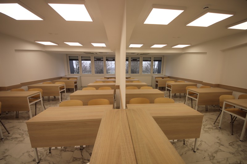 Sveučilišni dio se sastoji od sedam predavaonica ukupnog kapaciteta od 330 mjesta, zatim smještajnog kapaciteta studentskog doma-hostela vrlo visokog smještajnog standarda, s 29 potpuno opremljenih dvokrevetnih soba s vlastitim kupaonicama za smještaj 58 studenata. Isto tako budućim je studentima osiguran prostor za učenje i provođenje slobodnog vremena uz neograničen pristup internetu, (Wi-fi, TV…), a osiguran je i administrativni prostor za dekanate, te kabineti za nastavno osoblje.