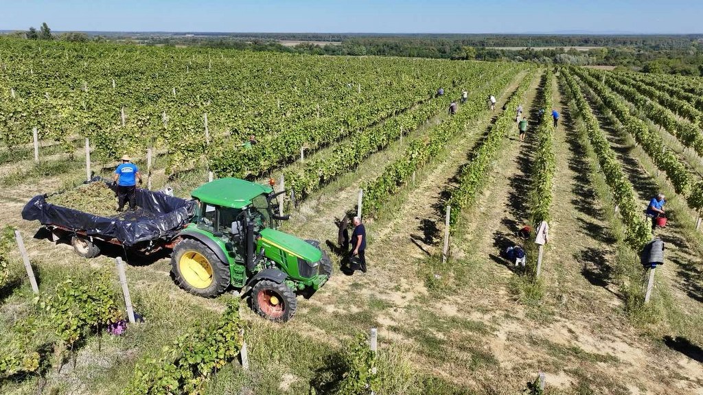 Halas je istaknuo kako se ove godine bere na ukupno 18 hektara površine – od čega 12 hektara mlade graševine, 2 hektara chardonnaya, 2 hektara pinota sivog i 2 hektara pinota crnog. Dosad je već prikupljeno 4.000 litara chardonnaya za budući pjenušac te jednaka količina pinota crnog namijenjena rosé pjenušcu.