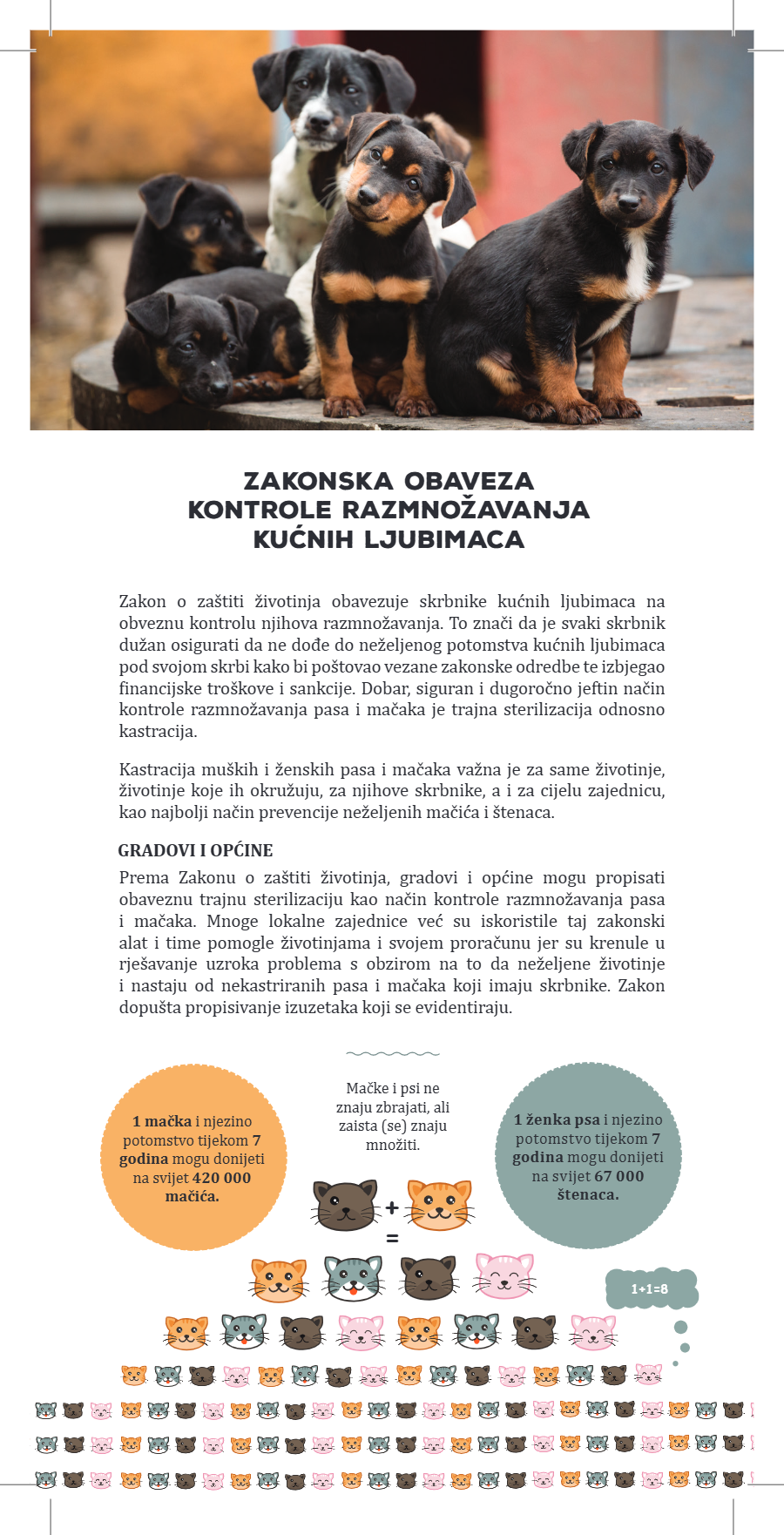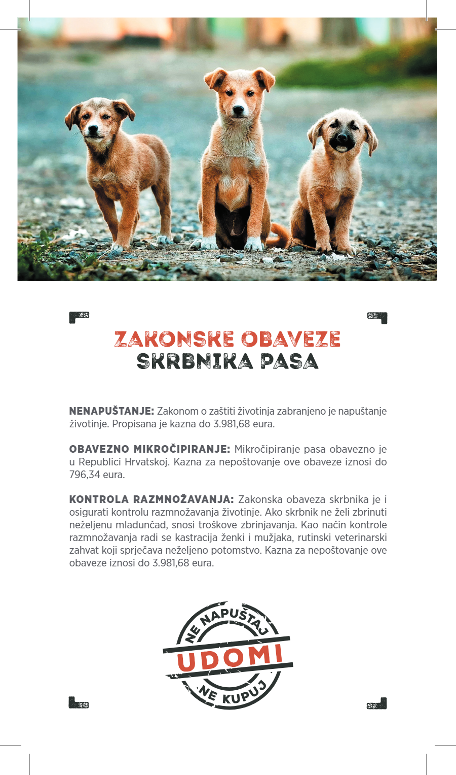 Prijatelji životinja u svom radu kontinuirano podsjećaju na zakonske obveze skrbnika – poput obavezne kontrole razmnožavanja ljubimaca te obveza koje posebno vrijede za vlasnike pasa.