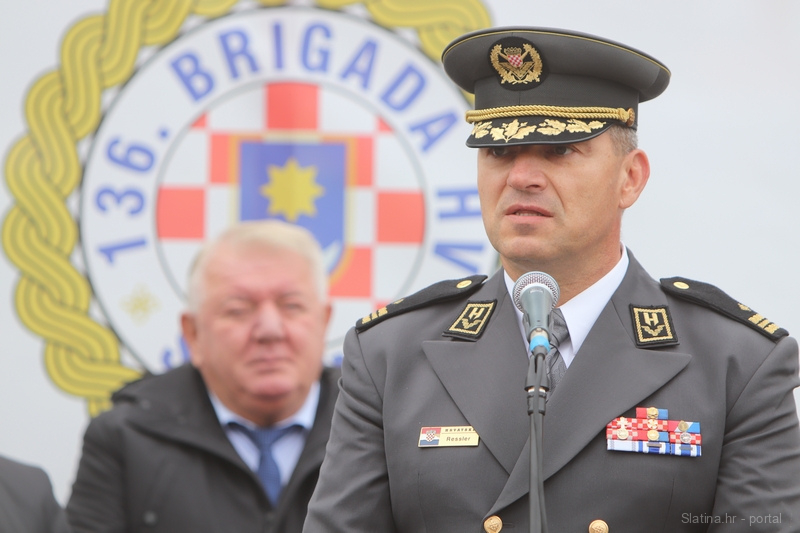 Na kraju je pripadnicima 136. slatinske brigade pozdrave predsjednika Republike Hrvatske prenio njegov izaslanik, zapovjednik Gardijske mehanizirane brigade Hrvatske kopnene vojske, brigadni general Dražen Ressler.
