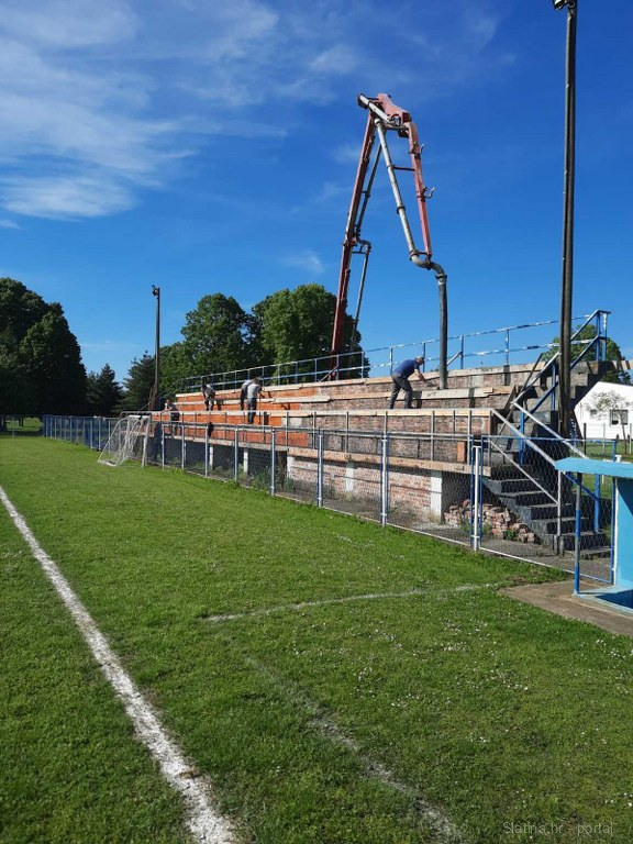 Tako je na tribinama postavljen novi sloj betona čemu su prethodili radovi zidanja kako bi se zatvorio prazni prostor između razina stepenica, odnosno sjedišta, čime je uklonjena opasnost za one mlađe posjetitelje, a nakon žbukanja je postavljena potrebna armatura, te su cijele tribine „presvučene“ novim slojem betona od 6 cm.