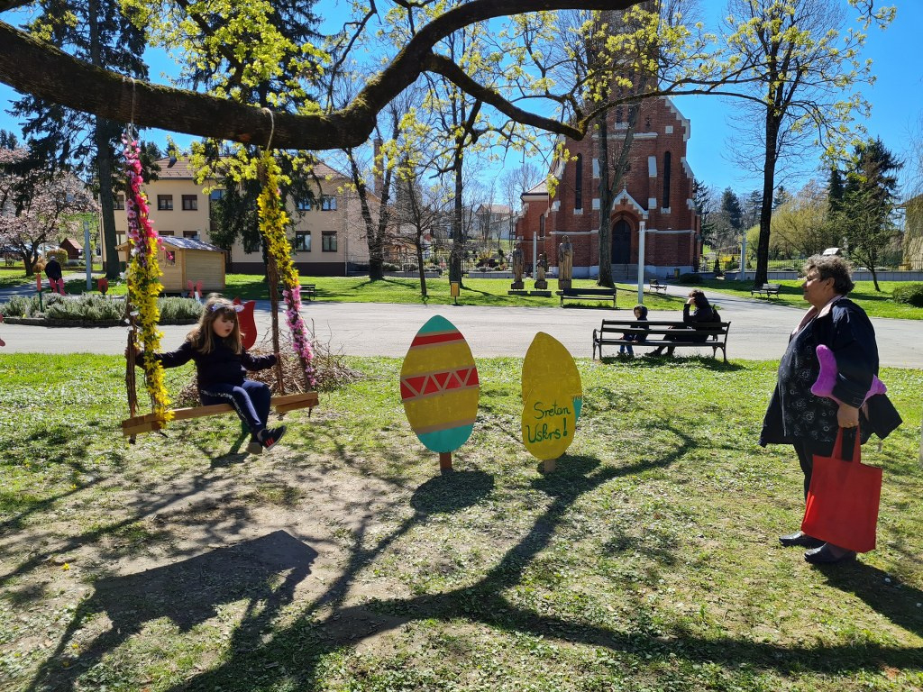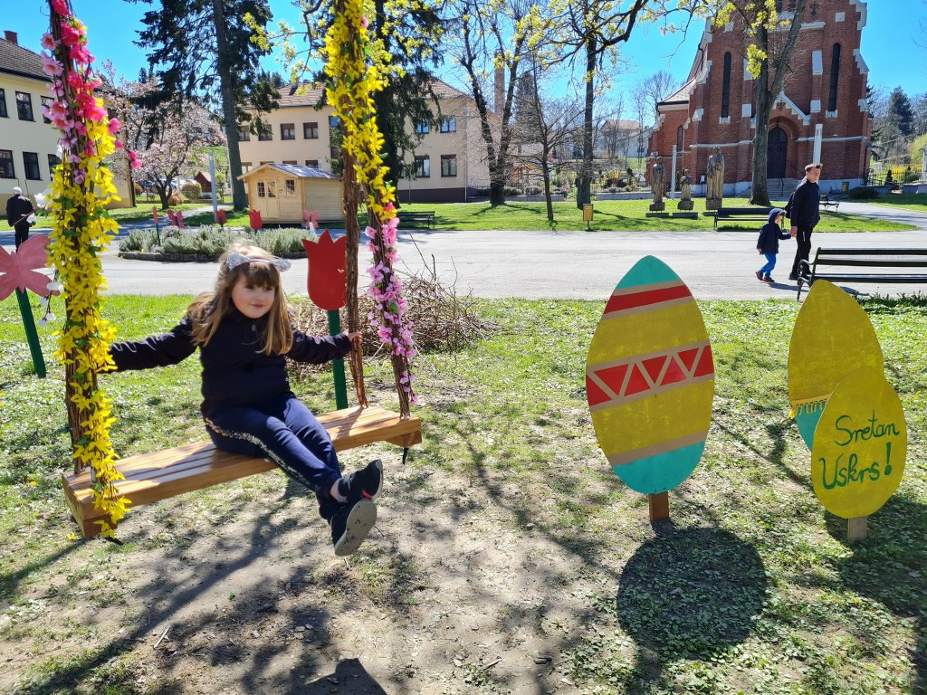 No ipak ono što je najzanimljivije mališanima, ali i našim mladima je velika uskršnja ljuljačka ispred zgrade Gradske uprave, mjesto za proljetne radosti, a možda i pokoji mladenački poljubac.
