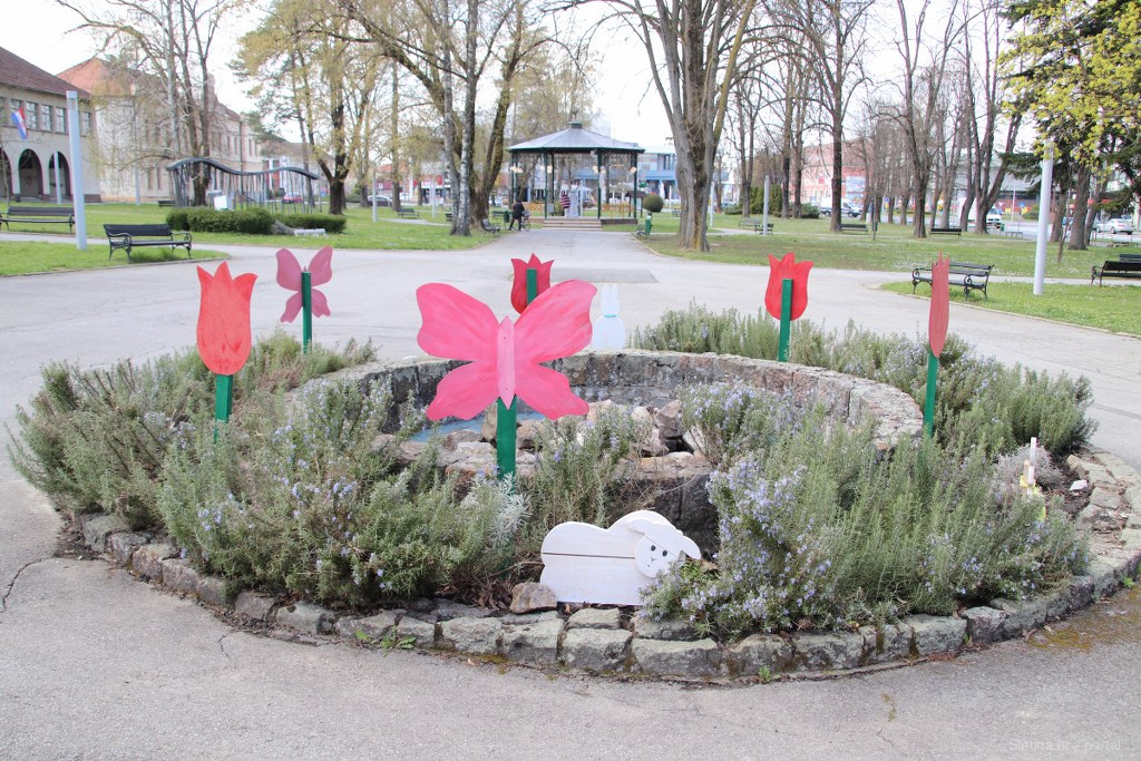 Jedna velika pisanica također ispletena od vinove loze resi središte kružnog toka na Trgu sv. Josipa, a nekoliko je uskršnjih detalja smješteno oko gradske fontane gdje se svi zainteresirani mogu i fotografirati u sklopu panoa s uskršnjim motivima kako bi im ostala uspomena na ovogodišnji Uskrs u našem gradu.