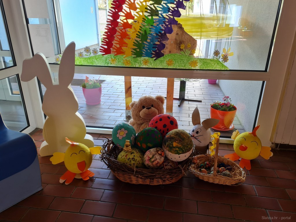 Djeca iz 13 odgojnih skupina (9 vrtićkih i 4 jasličkih) uživala su na terasama, dvorištu i u sobama dnevnog boravka u Uskrsnoj potrazi i traženju čokoladnih jaja s kojima su se potom zasladili, a nešto od čokoladnih iznenađenja ponijeli i svojim kućama. Nije Zeko zaboravio ni 4 odgojne skupine iz Male škole.